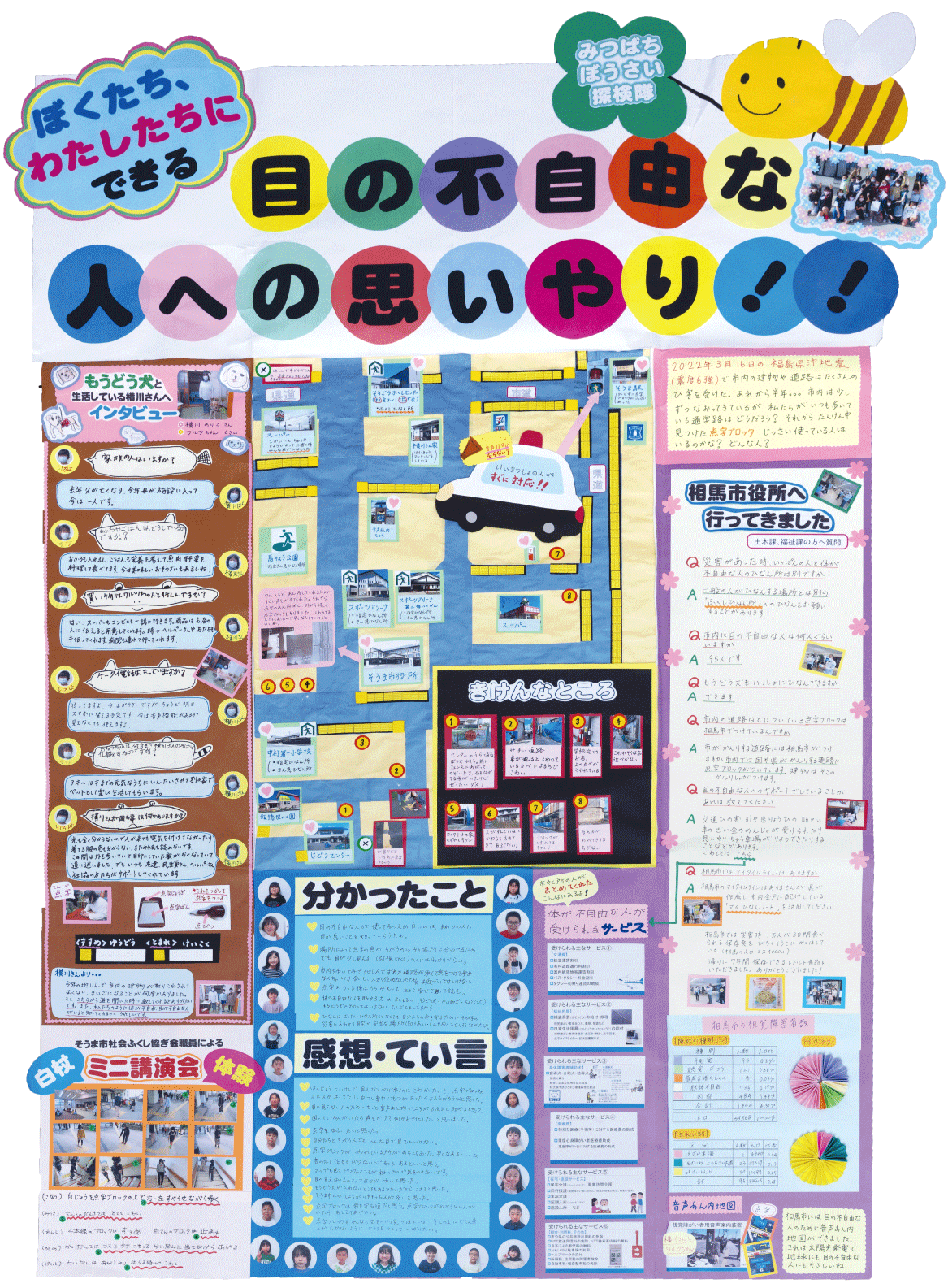応募作品の傾向として、まち歩きを通じて分かった事柄を図表やイラストなどにまとめるだけでなく、自らが抱いた疑問を調査・研究したことが読み取れる作品が多数あり、いずれも力作ばかりでした。また、マップの作成を通じて、自治体等に対して高いブロック塀の撤去、台風などで破損した道路設備の修繕、夜間に暗がりになる道路の街灯設置など具体的な改善点を提言する作品も多く、子どもならではの視点から、地域をより安心・安全なまちにしたいという熱意が強く感じられました。
