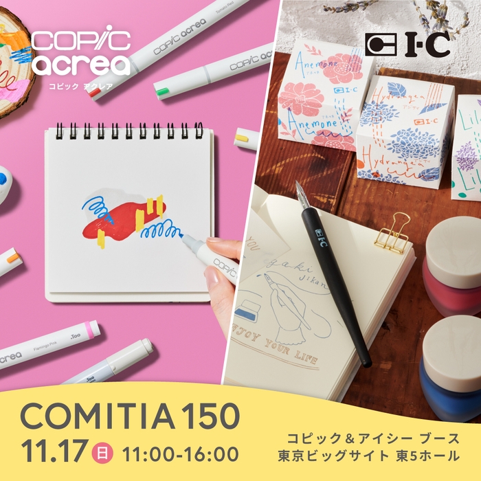 漫画画材ブランド「アイシー」を製造・販売する株式会社G-Too(本社:東京都港区、代表取締役:石井 剛太)は、画材ブランド「コピック」とともに2024年11月17日(日)に東京ビッグサイトで開催されるコミティア150に出店いたします。