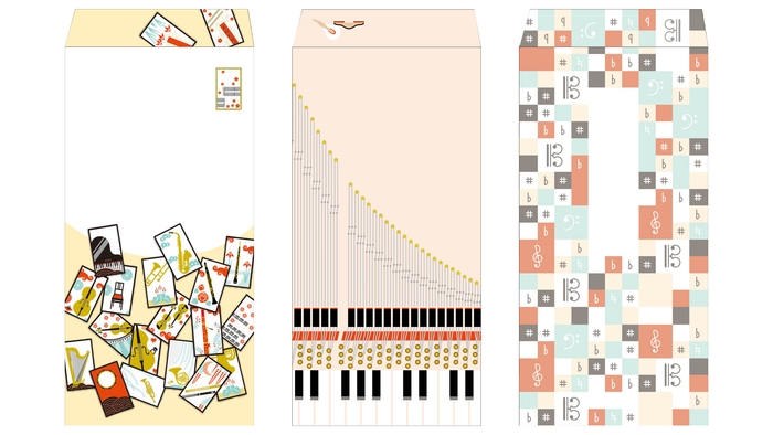 『封筒A 楽器花札柄ー5枚入り』 『封筒B ピアノ柄ー5枚入り』 『封筒C 音符モザイク柄ー5枚入り』 5月16日発売!