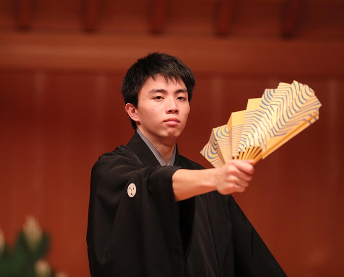 学生でありながら、狂言師としてすでに活躍している井上さん。学業のかたわら稽古に励み、年5〜6回行われる公演を中心に年間50日も舞台に立っています。