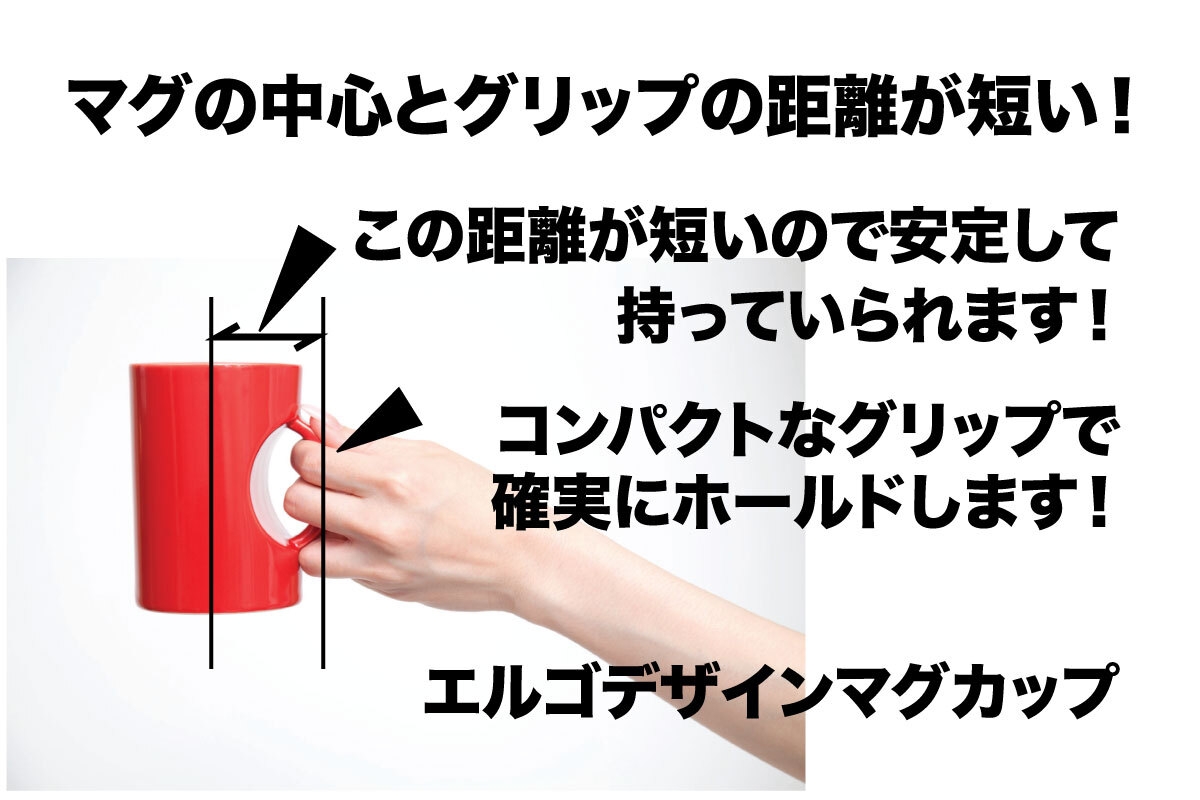 エルゴマグは、日常のコーヒーブレイクを快適でスタイリッシュにするために設計された、エルゴノミック(人間工学に基づいた)なマグカップです。シンプルでミニマルなデザインと、手にフィットする取手が特徴です。取手がボディに半分埋め込まれているため、持ちやすく、グリップの安定感と安心感が抜群です。