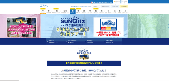 「エアトリ国内ツアー」にて、九州・下関のバス・フェリーが期間中乗り放題&自由に旅程を選択可能なお得なSUNQパスの取扱販売を開始