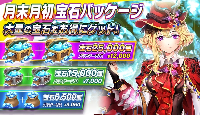 10月28日(水)のメンテナンス後から、宝石をお得に購入できる特別パッケージの販売を開始しました。この機会に宝石を購入して、よりメリーガーランドを快適に楽しみましょう!