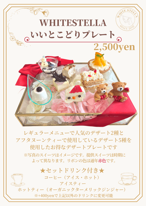 六本木・西麻布にあるフォトジェニックカフェ「ホワイトステラ」では、アフタヌーンティーが新登場するたび、アフタヌーンティーに使われているデザートとホワイトステラ人気デザートを使用したお得なプレートも販売中!