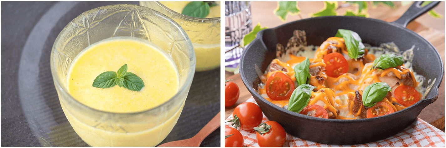 前菜にぴったりの「かぼちゃの冷製すり流し」や「信玄どりのダブルチーズトマトソースがけ」などの洋食メニューはもちろん、醤油味の「甲州名物 鳥もつ煮」など意外なメニューのペアリングもご提案しています。