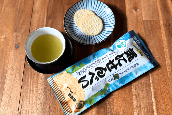 この商品はしお味の元祖うす焼き煎餅ブランド「オランダせんべい」に当社が開発した海藻由来の『塩分吸着パウダー』を配合することで、いつものおいしい塩味はそのままに健康をサポートしてくれる煎餅です。