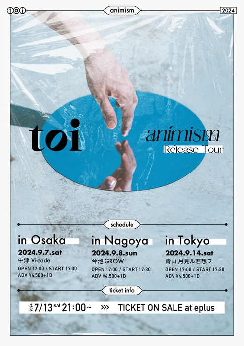 ex.ドラマストア鳥山のソロプロジェクト「toi」が本格始動! 1stフルアルバム「animism」を8/7に配信!フルアルバムのトレーラーも初公開!