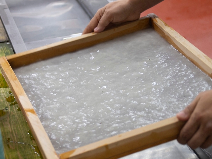 今回、地域の魅力をお届けするとともに、当館のコンセプトに沿った体験を皆様に気軽に愉しんでいただけるよう、1000年以上続く伝統工芸「紙すき」体験を実施している「沙羅の木」とのコラボが実現しました。
