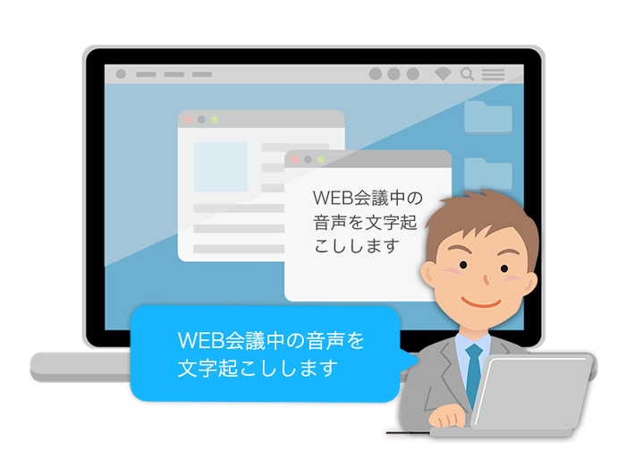 AIがオンライン会議中の音声の文字起こしを行います。会議内容をリアルタイムで記録・確認をすることができます。