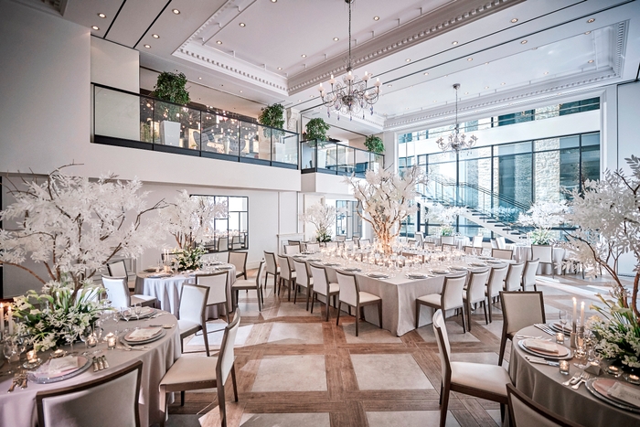 品格とチャーミングを併せ持つデザイン。NYにあるグラマシーパークをモチーフに、センスと品格を持ち合わせたお嬢様をイメージした邸宅です。ホワイエやバーカウンターも兼ね備え、特別なカクテルでゲストをお出迎えできる設備も完備。優雅に螺旋階段からも登場でき、花嫁の理想を詰め込んだ夢のような披露宴会場です。