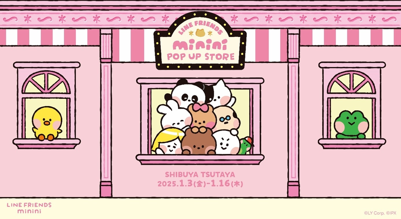 2025年1月3日(金)~2025年1月16日(木)に、LINE FRIENDSのキャラクター「LINE FRIENDS minini(ミニニ)」のPOP-UP ストアをSHIBUYA TSUTAYA 6階 IP書店内にて開催します。