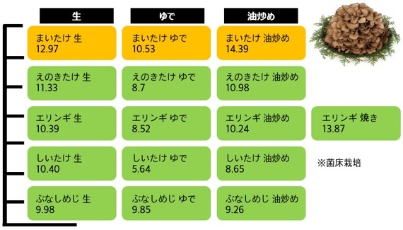 「まいたけ」は栄養素充足率スコアが 主要きのこの中で1番