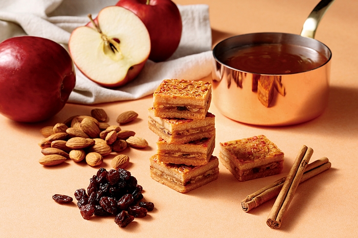 横浜土産のロングセラー「横濱レンガ通り」より秋冬限定のリンゴフレーバーが登場!自家製生キャラメルにローストしたアーモンドとリンゴ、レーズンを絡めシナモンクッキーでサンドして焼き上げました。こだわり抜いた素材を使用した、秋冬にしか味わえない横濱レンガ通りです。
