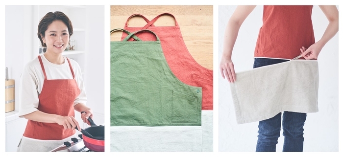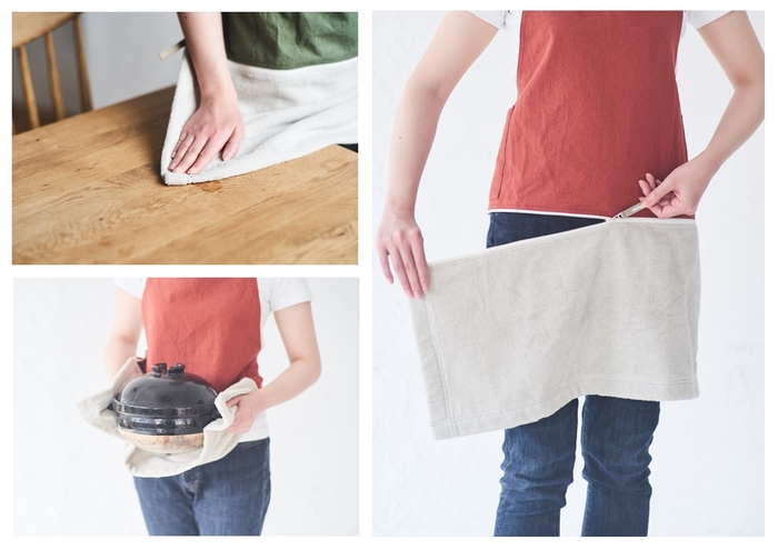 「拭ける」、そして「外せる」。機能性と上質な着心地を追求し生まれた、タオル一体型エプロン 料理家 和田明日香監修「zipron(ジップロン)」