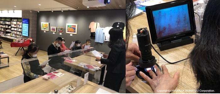 緑内障研究の第一人者である緑内障を専門とする医師へのインタビュー内容をお客様に紹介いただきました。また、毛細血管観察装置『血管美人』でご自身の毛細血管の血流を測定する体験もしていただきました。