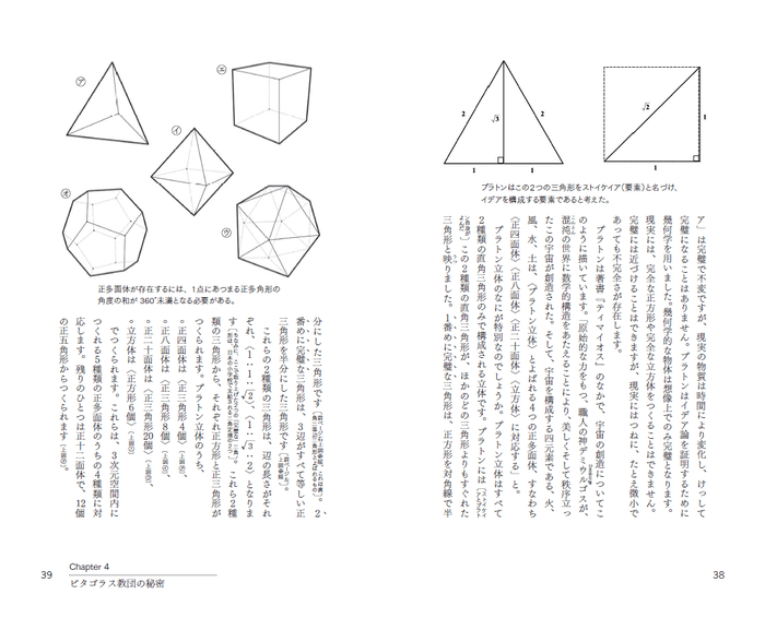 1章 数学の印象(しるし) 2章 叡智の発掘 3章 ある書記官の物語 4章 ピタゴラス教団の秘密 5章 史上最高の数学ベストセラー 6章 証明はどこに行った? 7章 数論の夜明け 8章 無の起源 9章 バグダッドからの残響 10章 数学のタペストリー 11章 伝統と革新のあいだ 12章 美は数学者の目に宿る 13章 三次方程式(キューブ)をめぐる大惨事 14章 代数コードを解読せよ 15章 宇宙の調和 16章 数学マシーン 17章 インターネットか、メルセンヌか 18章 けっしてやめられないゲーム 19章 閉ざされた扉と開かれた心 20章 ライオンと魔女 21章 旅する数学者 22章 近代幾何学とその痕跡 23章 無から生まれた新しい世界 24章 ロマン派数学 25章 不思議の国の論理 26章 混沌の静かなる誕生 27章 無限の大きさ 28章 次々に明らかとなる次元の拡がり 29章 世界の数学者が団結 30章 完璧さの追求 31章 ラムゼーと仲間たち 32章 抽象代数の母 33章 ニコラスとよばれる仲間たち 34章 ゲームで遊ぼう 35章 カリフラワーと海岸線 36章 未完の仕事 37章 マリアムの魔法の杖 38章 数学の必勝法 39章 新しい次元への旅の準備 40章 新しい数学の夢 訳者あとがき、索引