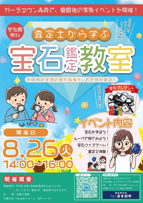 2025年8月13日(水)、新潟市中央区のショッピングセンターデッキー401にて、買取専門店さすがや主催の親子向けイベント「宝石鑑定教室」が行われました。