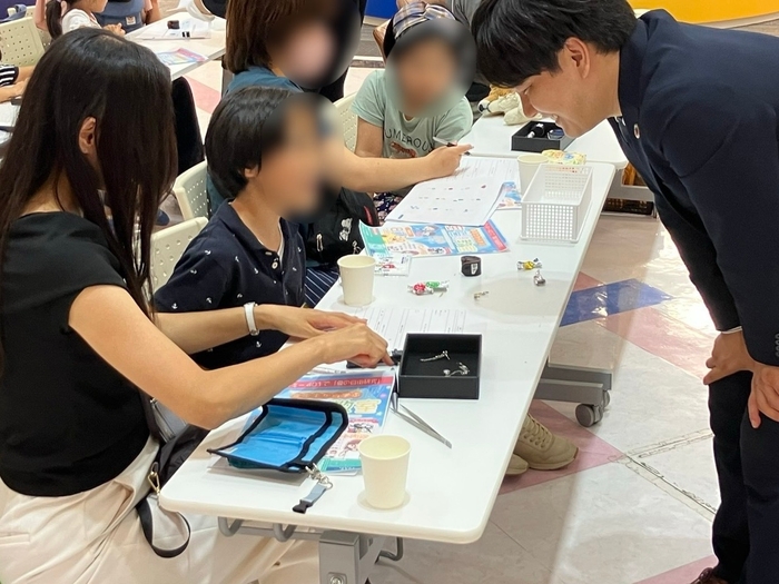 さらに会場では、参加者のご家族が持参したジュエリーや婚約指輪などを、プロの鑑定士が無料でその場で鑑定。その後、そのデータや鑑定の視点を学びながら、子どもたちが「鑑定士体験」として自分で査定に挑戦する場面も。