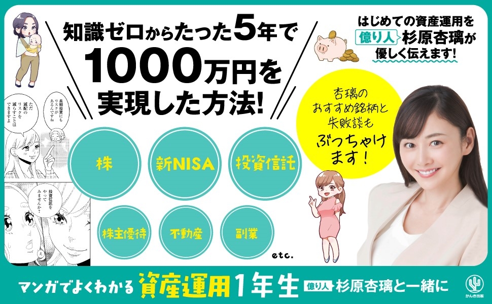 知識ゼロ→億り人になった杉原杏璃さんの資産形成術を教えます!「株」「不動産」「投資信託」「新NISA」まで、初心者でも気軽に始められる資産運用入門書が登場