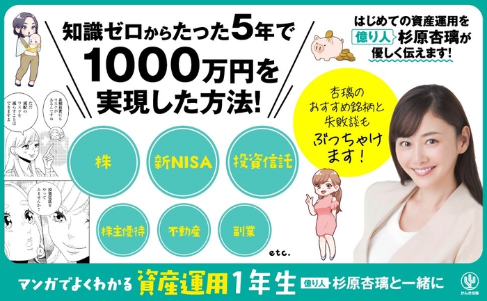 株式会社かんき出版(本社:千代田区 代表取締役社長:齊藤龍男)は、『マンガでよくわかる資産運用1年生 億り人杉原杏璃と一緒に』(杉原杏璃/著 伊藤カヅヒロ/イラスト 星井博文/作画)を2024年7月10日より全国の書店・オンライン書店等(一部除く)で発売いたします。