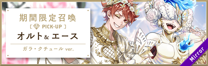 本召喚では、期間限定のSSR オルト[フェアリー・ギア]とSR エース[ガラ・クチュール]が登場します。