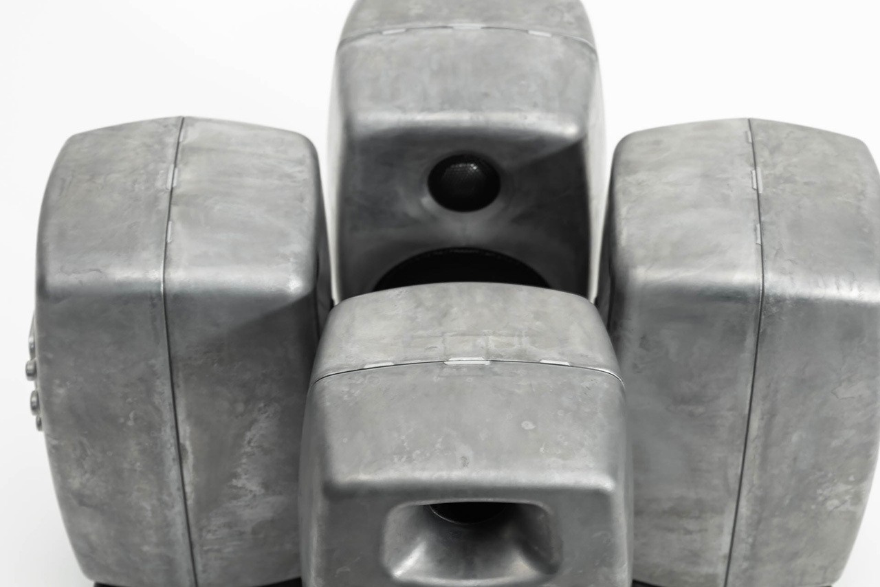 RAWフィニッシュは、97%にもおよぶリサイクル・アルミニウムを採用したエンクロージャの質感を活かすべく、あえて塗装の工程を省き、他では得られないデザイン性とより地球に優しい製造工程を実現しています。