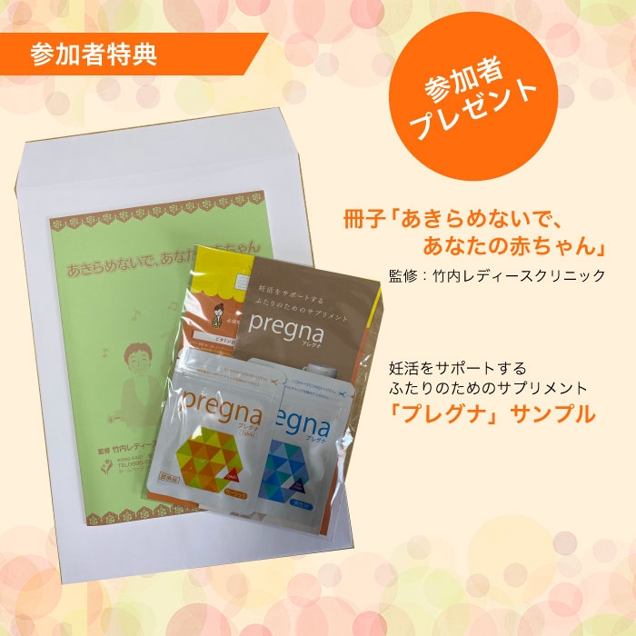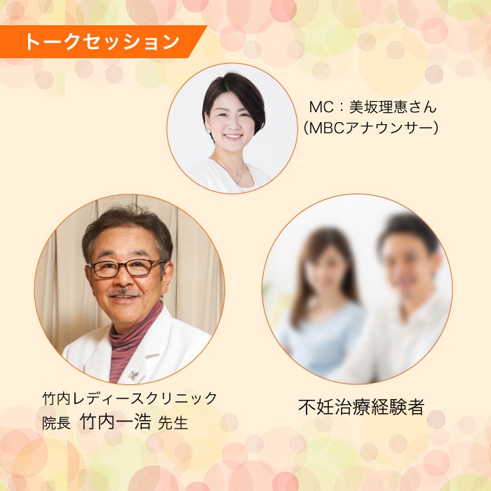 また、トークセッションでは、実際に不妊治療を経験されたご夫婦が登壇し、妊娠に至った経緯について竹内先生も交えてお話いたします。