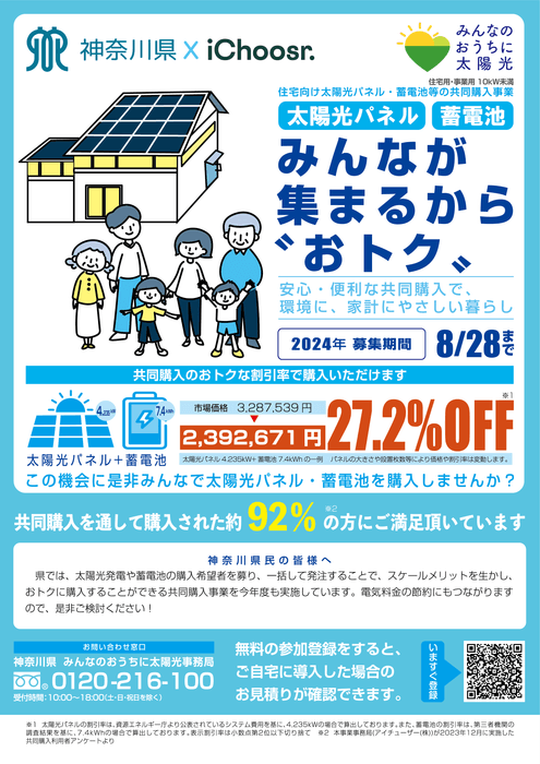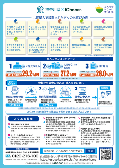 神奈川県で実施中の太陽光パネル・蓄電池の共同購入事業 「みんなのおうちに太陽光」の入札結果が出ました! 最大で約29.2%の価格低減を実現