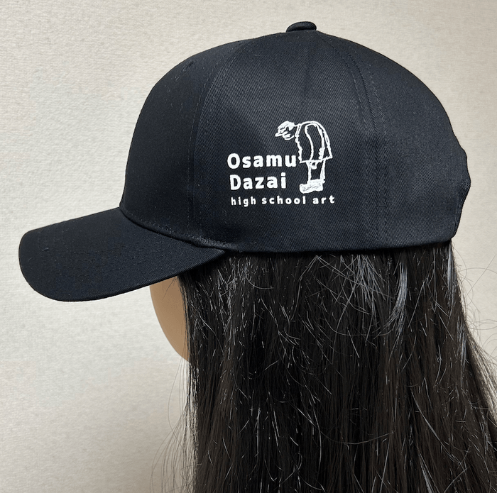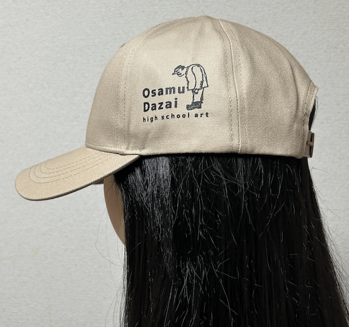 キャップが欲しいというファンの方々の声を元に制作した、フリーサイズのキャップです。左側に太宰治のアートがプリントされています。