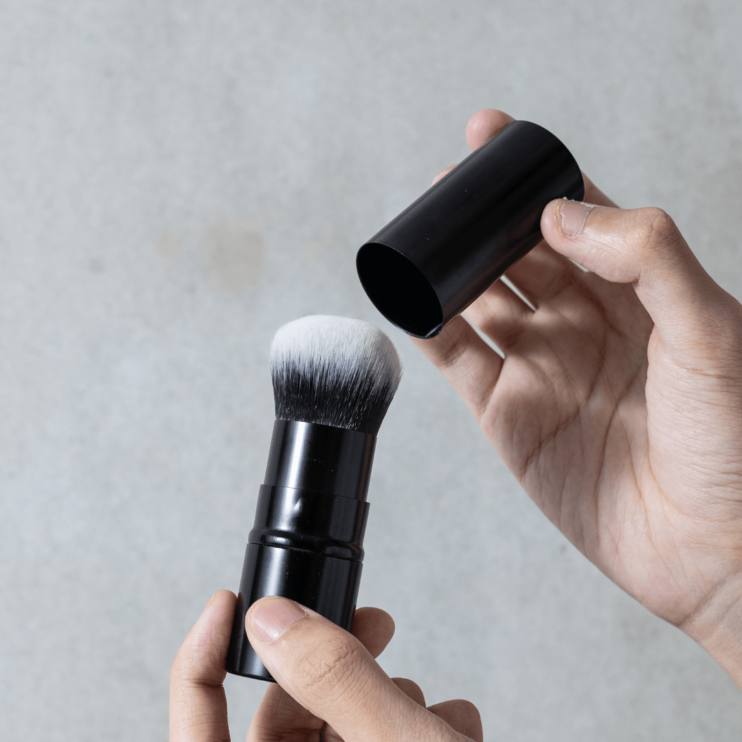 筒の部分にブラシを収納できるため、化粧箱やポーチの中が汚れる心配がありません。