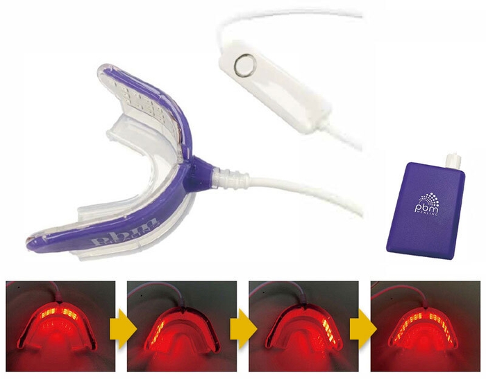 光加速装置は、口にくわえて歯に光の照射を与えるだけなので、痛みもなく、空いた時間に自宅で簡単に行うことができます。