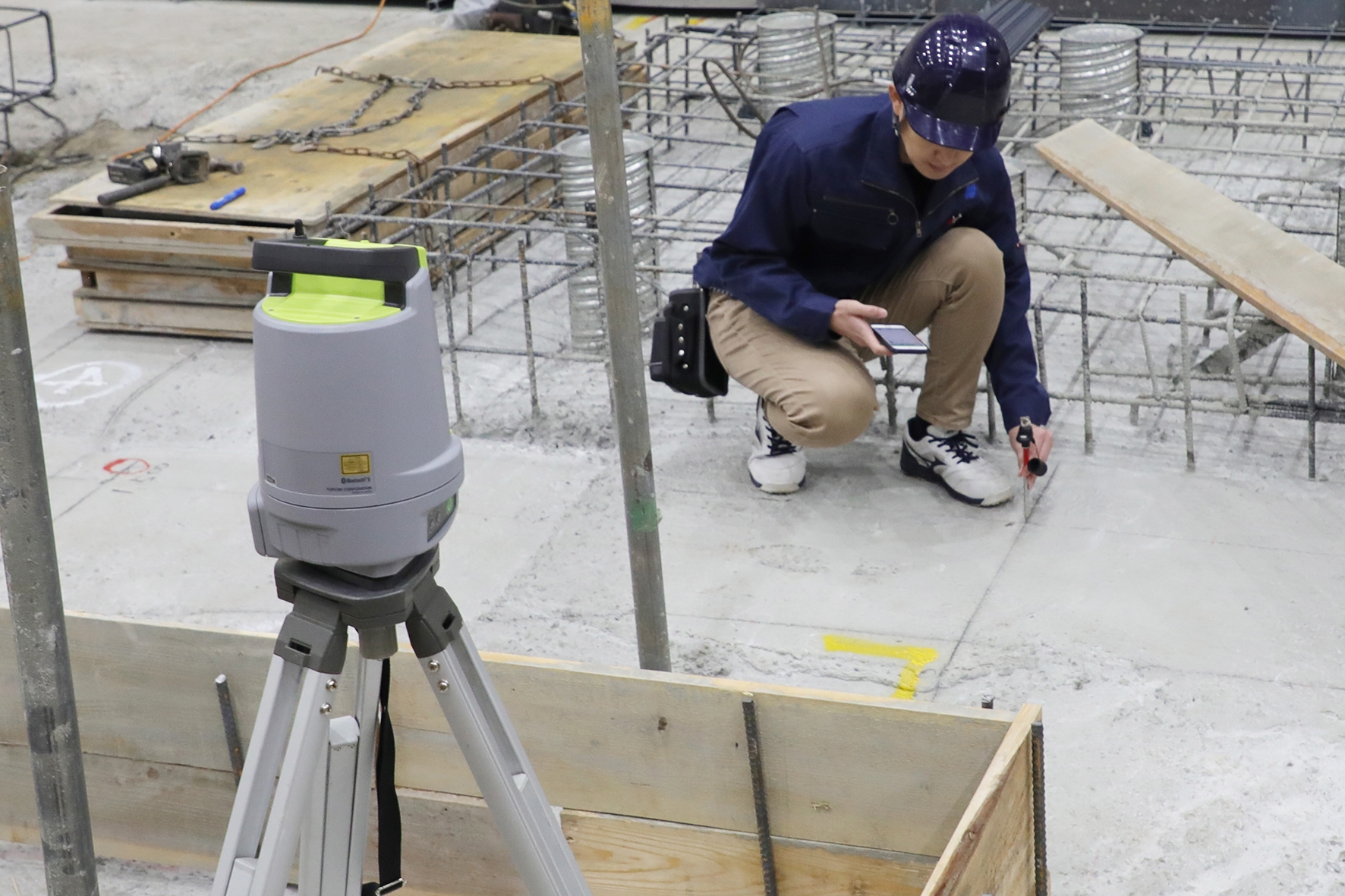また、正確な位置出しが困難な高低差のある現場でも、高精度な位置出しが可能です。測量外注費用の削減にも貢献します。