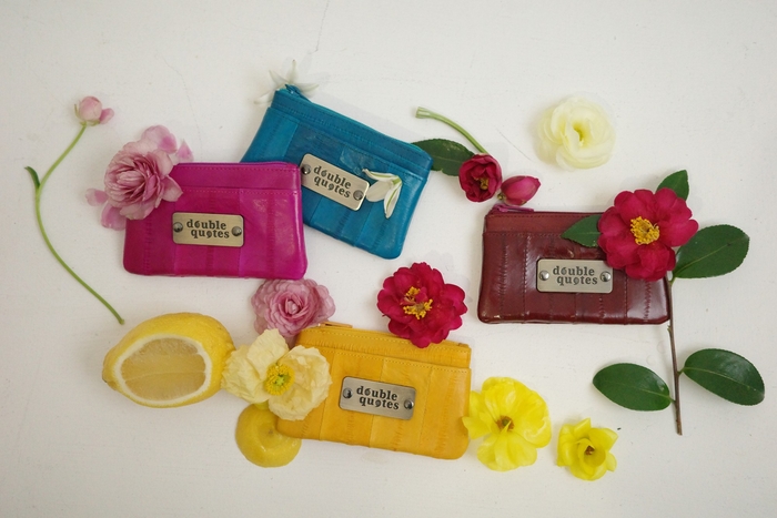 double quotes(ダブルクォーツ)は、韓国発のエシカルレザーブランド。韓国産のイールスキン(うなぎ革)を贅沢に使用し、環境に配慮したサステナブルなモノづくりを大切にしています。唯一無二の色彩や風合い、遊び心あふれるデザインで、毎日に彩りと特別感を届けるアイテムを提案しています。