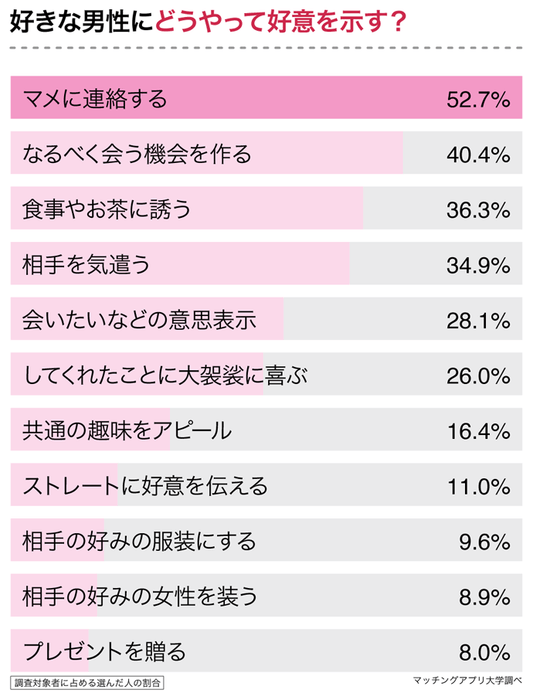 次に、具体的にどうやって好意を示すのかを聞いてみました。