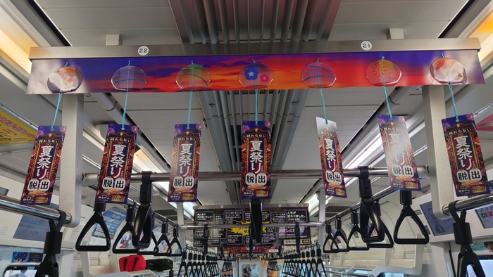 2023年最大のリアル脱出ゲーム『終わらない夏祭りからの脱出』が お盆休みの京葉線中吊り広告をジャック! 風鈴がはためく中吊りで夏祭りを演出!