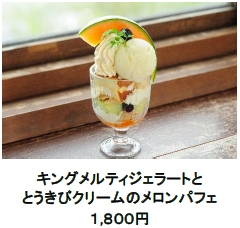 北海道余市町にある人気ジェラート店「FRUTICO」から特別に仕入れたキングメルティのジェラートにメロンの果肉を合わせた特製パフェ!