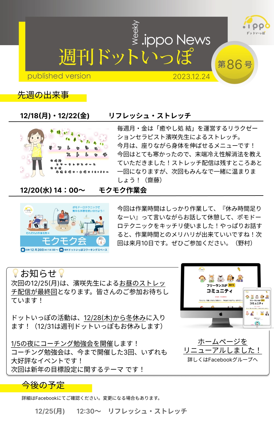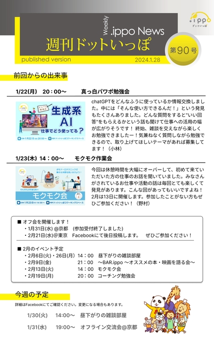 加えて、イベントに参加できなかった人でも、コミュニティ内の活動状況が分かるように、『週刊ドットいっぽ』というコミュニティ内の配信を毎週行っています。コミュニティ内での様々な活動をコミュニケーションのきっかけにして、様々なつながりを作っていただけるよう、今後も工夫を重ねてまいります。