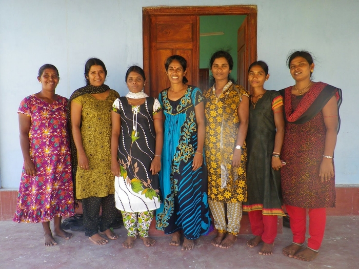 スリランカ北部に暮らす、内戦や2004年のスマトラ島沖地震の津波によって家族を失った寡婦女性たちは、パルシックから提供されたミシンを使い、縫製技術の指導を受け、古着のサリーをブラウスやバッグなどにリメイクします。できあがった製品は、“Sari Connection”というブランド名を付けてコロンボの洋品店や土産物店などで販売しており、その売上が女性たちの収入となります。