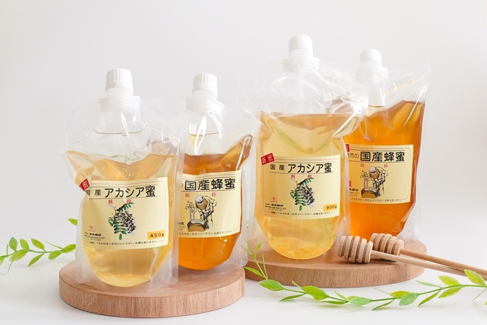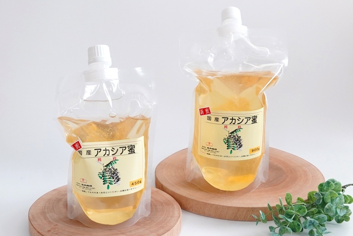 内容:秋田県に咲くあかしあの花から今年採れたばかりの蜂蜜を、たっぷり使えて持ち運びやすい大容量パウチに詰めました。すっきりとした味わいは、紅茶やトーストとの相性も抜群。