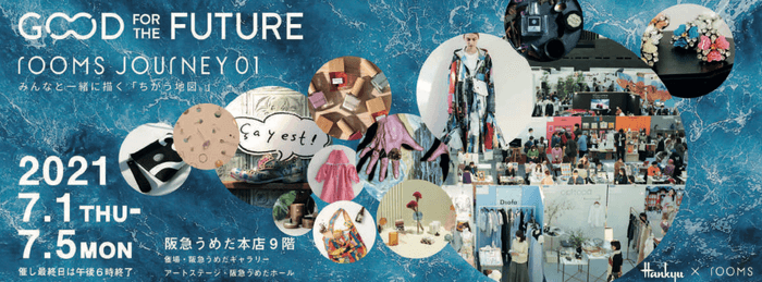 国内外のクリエイターを発信するプラットフォーム「 rooms ( ルームス ) 」は、日本各地の作り手とお客様の交流を通して地域活性を図る、旅する マーケットイベント「rooms JOURNEY(ルームス ジャーニー)01 みんなと一緒に描く「ちがう地図。」 」を大阪・阪急うめだ本店 9 階 にて、 2021年7月1日(木)~7月5日(月) の5日間開催されます。阪急うめだ本店のキャンペーン"GOOD FOR THE FUTURE" の テーマのもと、 クリエイティブでサステナブルな思想や文化、アイデアを持つ作り手が約 80 組集結します。 ( うち 26 組は大阪初出店 )。