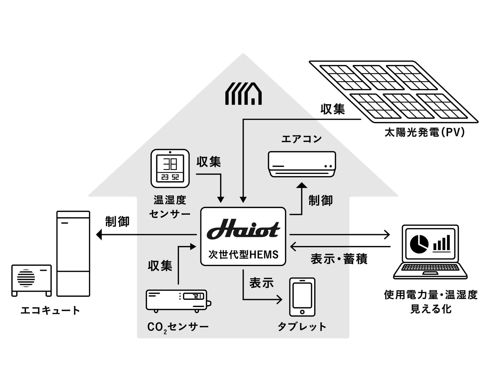 これまで自社で建築した住宅にのみ導入していた独自開発のエネルギー自動制御システム「ハイオシステム」を、一般家庭向けにも提供を開始し、日本の脱炭素社会の実現を確かなものにし、その歩みを加速させていきます。