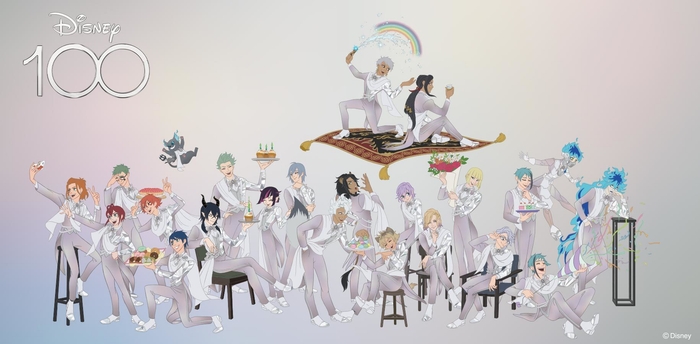 新コレクションはディズニー創立100周年の一環として、ナイトレイブンカレッジの生徒がプラチナの衣装に身を包んだ「Disney100テーマのプラチナジャケットアート」の描き下ろしイラストを使用したデザインです。