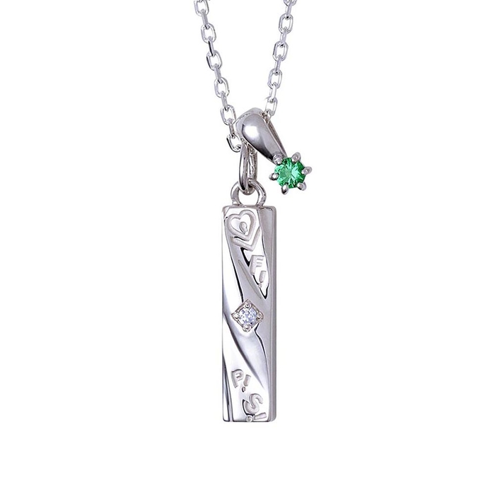 シンプルなバータイプのトップにはWの世界観を取り込み、裏面にはユニット名を刻印しました。ユニットカラーのストーンチャームがワンポイントのデザインです。