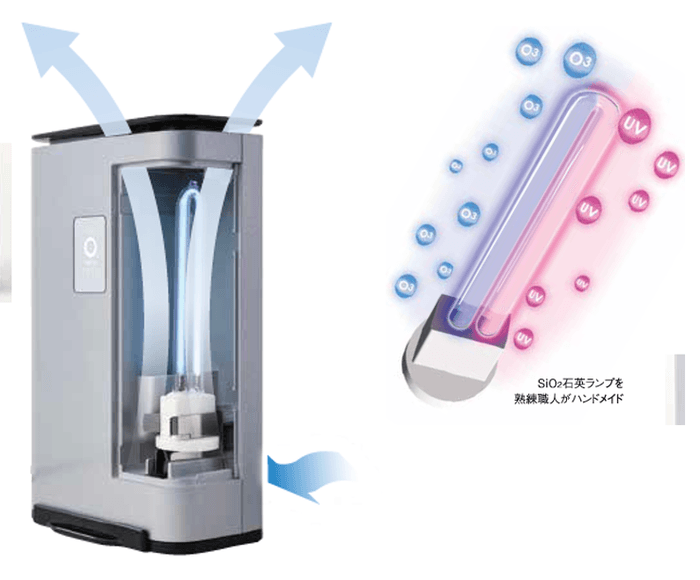 オゾンを直接放出しない紫外線ランプ方式なので独特のオゾン臭が苦手な方にも安心し使うことができます。