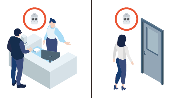 サーマルカメラで発熱者を検知します。独自の画像処理技術により、大人数を一度に確認することができ、効率的です。
