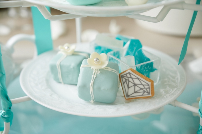 特別な日にふさわしい シャンパンのジュレ・バニラとラズベリーのハートムース・エルダーフラワーパンナコッタ・シトロンフレーバーの”サムシング・ブルー”マカロン・チョコとふんわりスポンジのグラデーションロリポップ・ホワイトリボンのパウンドケーキBOX・ダイヤモンドとサファイアをイメージしたミニャルディーズ