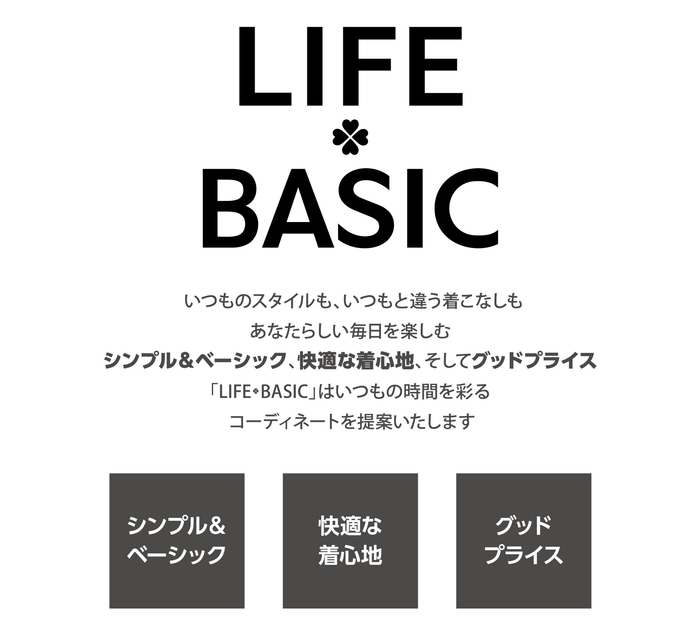 「シンプル&ベーシック」をコンセプトに、シンプルなデザインと快適な機能性にこだわった商品を展開するライフのオリジナル衣料品ブランド「LIFE BASIC」を導入いたします。