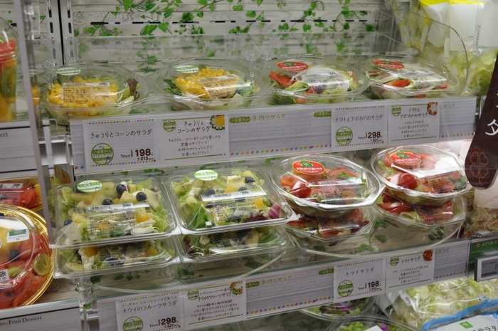店内で野菜を彩りよく盛りつけた鮮度感あふれるサラダを品ぞろえいたします。