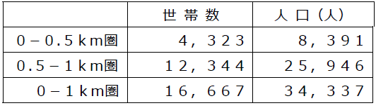 ・店舗から1㎞圏内は、単身世帯が45.2%、2人世帯が25.1%と、少人数世帯が7割を占めます。