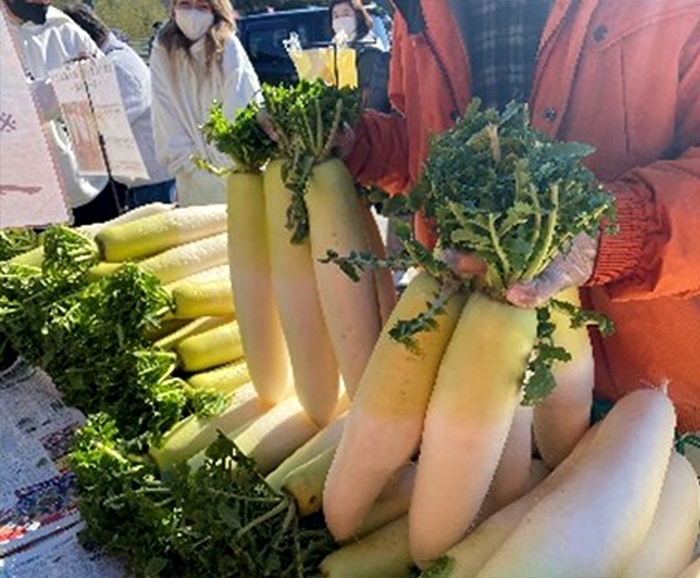 「ウマウマ野菜イベント」は、道の駅木更津うまくたの里の農産物の魅力をより多くの方にお届けしたいという想いから生まれた企画です。更なる物価高が進む今年も、地元の農産物をお得にお楽しみいただきたいと考え、価格据え置きのワンコインでの開催を決定しました!春のお出かけに合わせてご参加いただけるよう、3月1日(土)からも継続開催いたします。イベントに使用するのは通常店舗では出回らない、少し形が曲がっているものやサイズが不揃いのいわゆる規格外のお野菜。味は変わらず美味しいのに、販売できず廃棄されていたものを活用しています。規格外のお野菜を農家さんから買い取らせていただき、お客様へご提供することで、“農家さんにもお客様にも喜んでいただきたい”という想いが込められています。さらに人気イベントであることから、農家さんも良い品質のものを出したいという思いで、今では店頭と同じ品質のお野菜が数多く並ぶようになり、毎週末、行列必至の恒例イベントとなっております。
